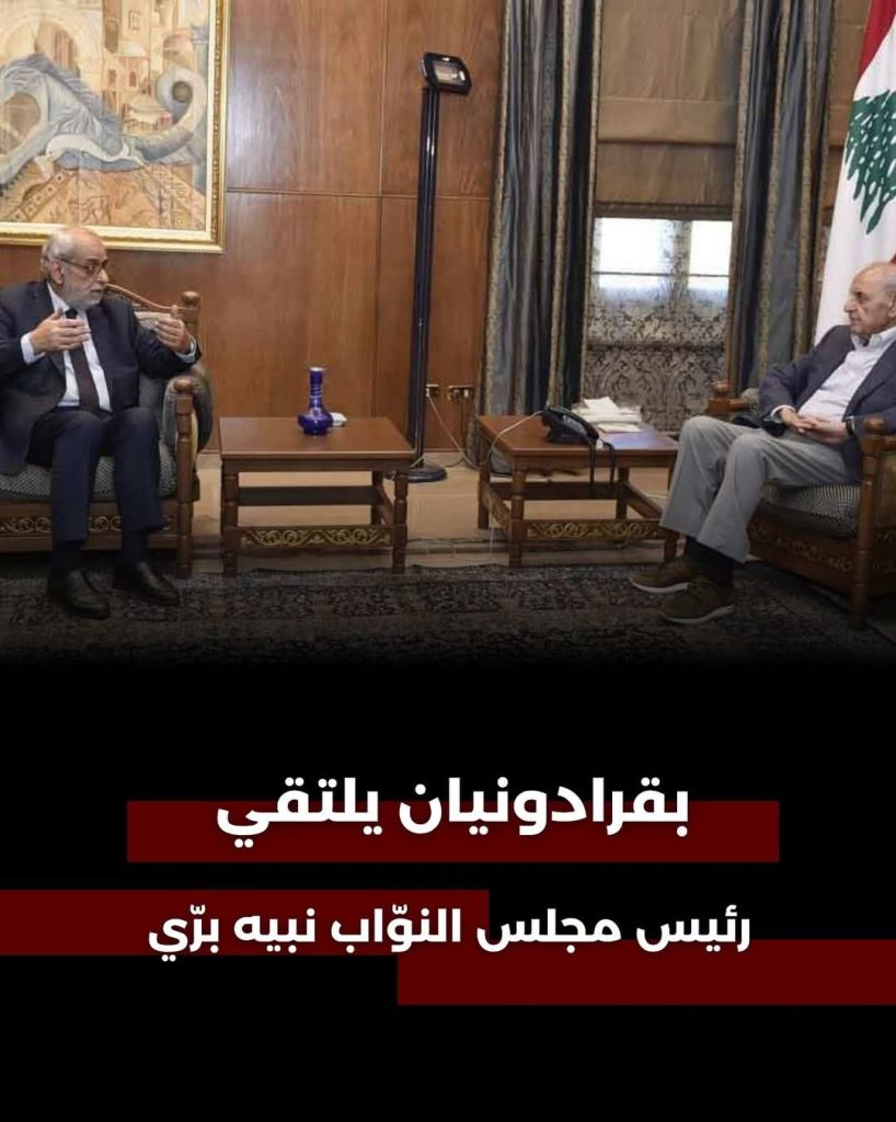 التقى رئيس كتلة نوّاب الأرمن وعضو اللجنة العالمية مسؤول الشرق الأوسط في حزب الطاشناق النائب هاغوب بقرادونيان، رئيس مجلس النواب نبيه بري في عين التينة.